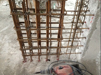 根據設計圖的配筋位置及數量,錯開原結構公斤位置,標注出植筋位置。請有關部門驗線,合格后就可鉆孔;