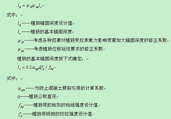 植筋錨固的長度應滿足下式: