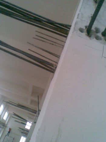 今天一早起來就跟滬荊公司技術(shù)人員又去房子里了,現(xiàn)澆植筋部分已經(jīng)完成,沙石料也都進(jìn)場(chǎng)了,支模工作即將開始。 首先看一下植筋部分的工作吧