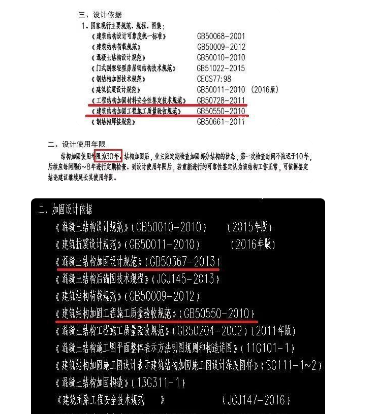 首先了解加固施工內(nèi)容、設(shè)計使用年限和依據(jù)。