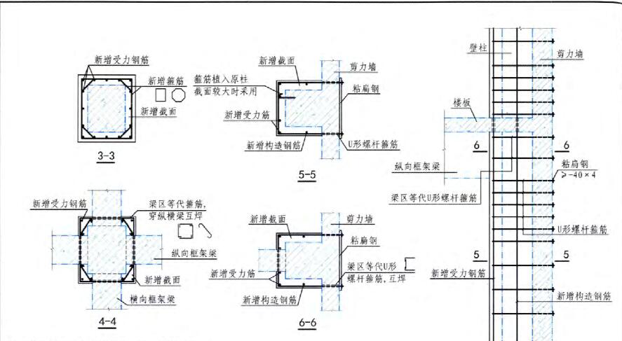 3. 新增箍筋在規(guī)定的范圍內(nèi) 應加密 , 加密區(qū)范圍和考慮原箍筋的配筋量應滿足 《建 筑抗震設計規(guī) 范 》 GB 50011 2010 的相關規(guī)定,一般情況宜》 φ8@200/ 400.