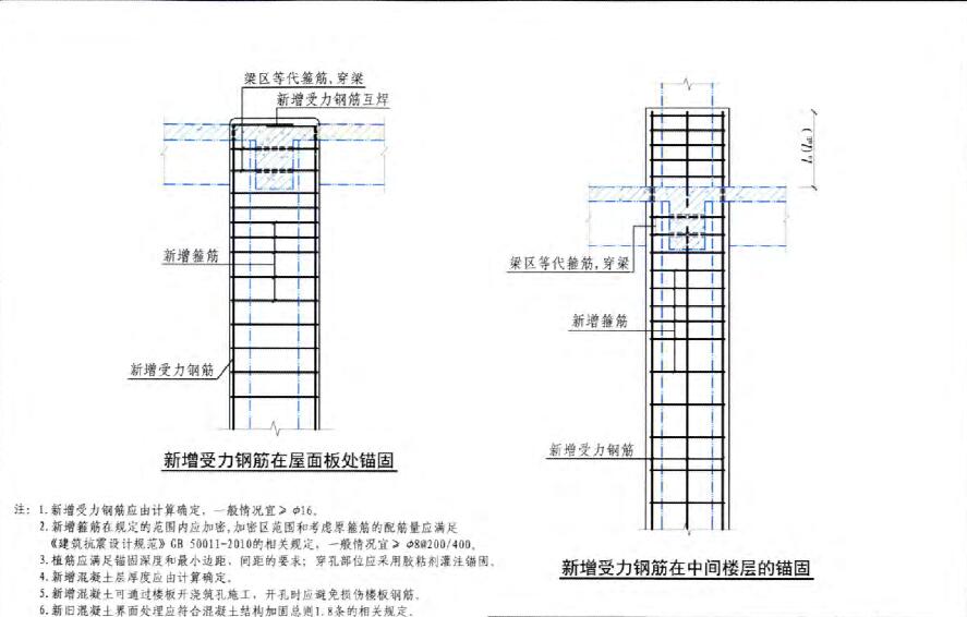 4. 新增受力鋼筋在基礎的錨回宜采用植筋的方式 。