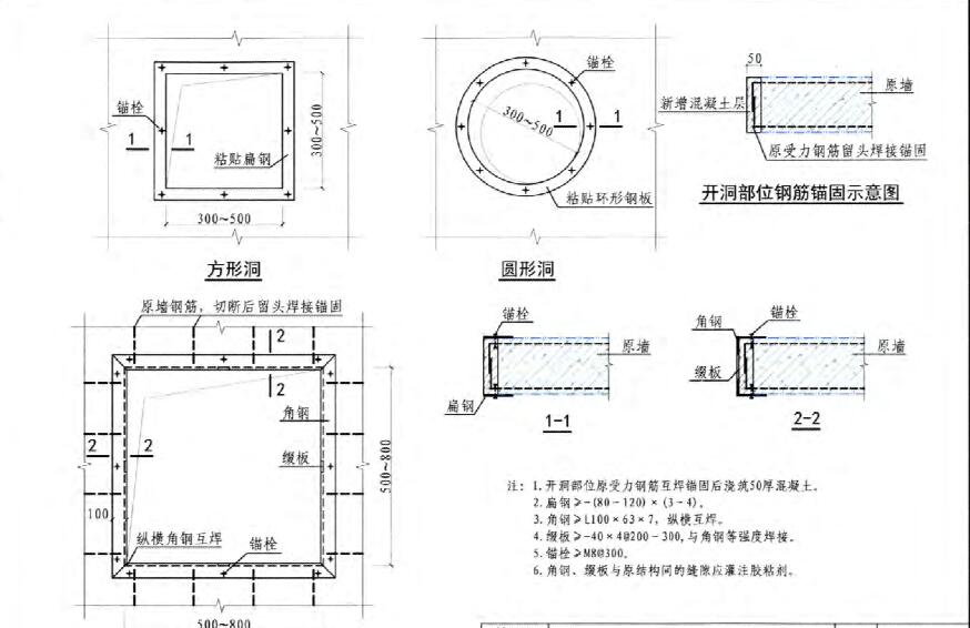 1. 開洞部位原受力鋼筋 互焊錨團后澆筑50厚混凝土。