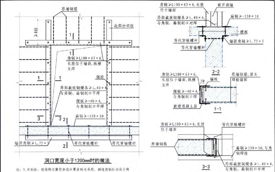 I. 開洞后,經(jīng)結構計算符合設計要求時可采用 。 洞邊角鋼應由設計確 定,且不小于 L lOOx6 3 × 60
