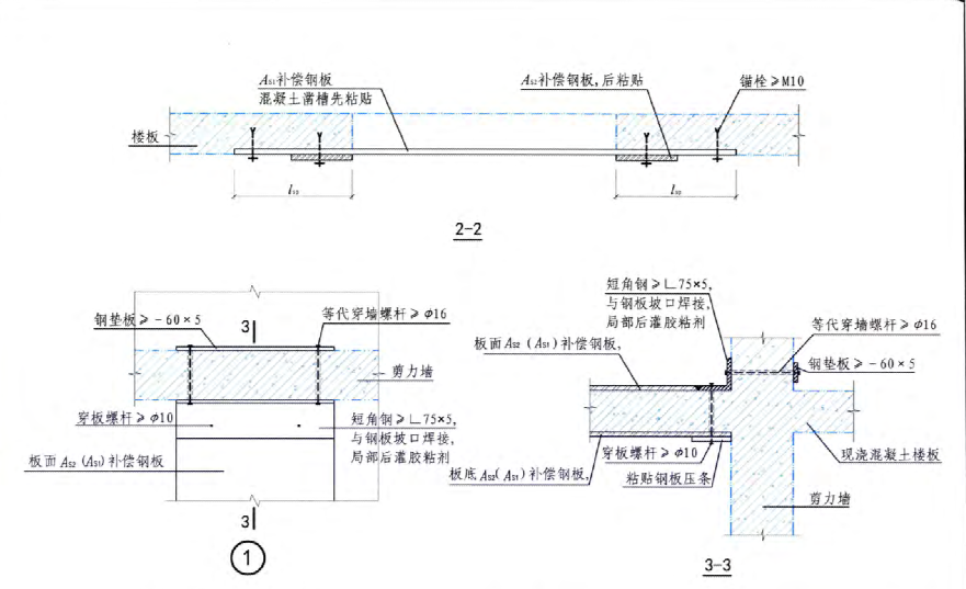 4 補(bǔ)償鋼板面積不小于切斷板鋼筋等效面積的 1. 2倍。