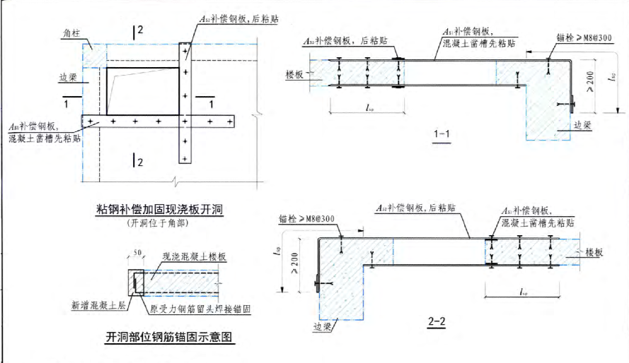 粘鋼補(bǔ)償加固現(xiàn)澆板開(kāi)洞 (開(kāi)洞位于角部)方法