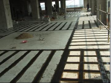 將抗拉強(qiáng)度極高的碳纖維用環(huán)氧樹脂預(yù)浸成為復(fù)合增強(qiáng)材料(單向連續(xù)纖維);用環(huán)氧樹脂粘結(jié)劑沿受拉方向或垂直于裂縫方向粘貼在要補(bǔ)強(qiáng)的結(jié)構(gòu)上,形成一個新的復(fù)合體,使增強(qiáng)粘貼材料與原有鋼筋混凝土共同受力增大結(jié)構(gòu)的抗裂或抗剪能力,提高結(jié)構(gòu)的強(qiáng)度、剛度、抗裂性和延伸性。