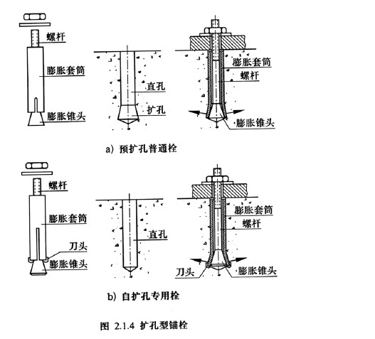 通過錨孔底部擴孔與錨栓膨脹件之間的鎖鍵形成錨固作用的錨栓(圖 2.1.4)。錨固技術(shù)規(guī)程