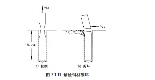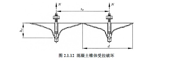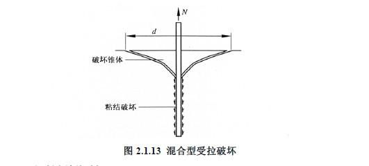 化學植筋受拉時形成以基材表面混凝土錐體及深部粘結(jié)拔出之組合破壞形式(圖2.1.13)。
