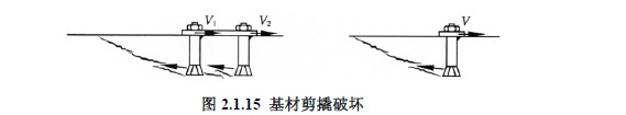中心受剪時基材混凝土沿反方向被錨栓撬壞(圖2.1.15)。