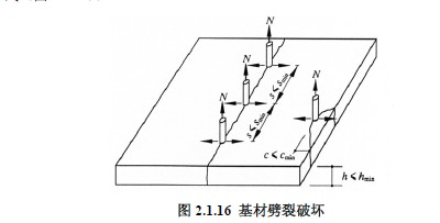 基材混凝土因錨栓膨脹擠壓力而沿錨栓軸線或若干錨栓軸線連線之開裂破壞形式(圖2.1.16)。