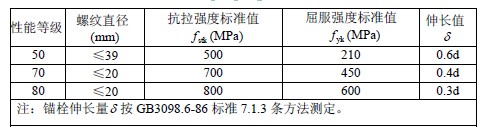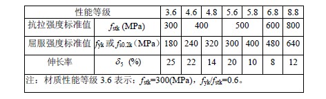 表 3.2.2 碳素鋼及合金鋼錨栓的性能指標
