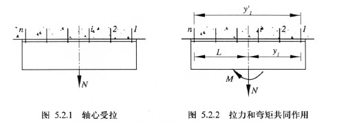 5.1 一般規(guī)定 5.1.1 錨栓內(nèi)力宜按下列基本假定進行計算: 1. 被連接件與基材結(jié)合面受力變形后仍保持為平面,錨板出平面剛度較大,其 彎曲變形忽略不計; 2. 錨栓本身不傳遞壓力(化學植筋除外),錨固連接的壓力應通過被連接件的錨 板直接傳給混凝土基材; 3. 群錨錨栓內(nèi)力按彈性理論計算。當錨固破壞為錨栓或植筋鋼材破壞,且為低 強(≤5.8 級)鋼材時,可考慮塑性應力重分布,按彈塑性理論計算。 5.1.2 當式 5.1.2 成立時,錨固區(qū)基材可判定為非開裂混凝土,否則宜判定為開裂 混凝土,并按《混凝土結(jié)構(gòu)設計規(guī)范》計算其裂縫寬度: L R 0 σ +σ ≤ (5.1.2) 式中 L σ ─外荷載(包括錨栓荷載)及預應力在基材結(jié)構(gòu)錨固區(qū)混凝土中所產(chǎn) 生的應力標準值,拉為正,壓為負; R σ ─由于混凝土收縮、溫度變化及支座位移等在錨固區(qū)混凝土中所產(chǎn)生 的拉應力標準值,若不進行精確計算,可近似取R σ =3MPa。 5.2 群錨受拉內(nèi)力計算 5.2.1 軸心拉力作用下(圖5.2.1),各錨栓所承受的拉力設計值應按下式計算: NSd = N / n (5.2.1) 式中NSd─錨栓所承受的拉力設計值; N─總拉力設計值; n─群錨錨栓個數(shù)。 5.2.2 軸心拉力與彎矩共同作用下(圖 5.2.2),彈性分析時,受力最大錨栓的拉力 設計值應按下列規(guī)定計算: 1.當 2 0 1 ? Σ ≥ i N n My y 時 21hsd i N = N n +My Σ y (5.2.2-1) 2. 當 2 0 1 < i N n ? My Σ y 時Nsd = NL + M y′ Σ yi′ (5.2.2-2) 式中 M─彎矩設計值; hsd N ─群錨中受力最大錨栓的拉力設計值;y1,y i─錨栓1 及i 至群錨形心軸的垂直距離; i y′, y′ 1 ─錨栓1 及i 至受壓一側(cè)最外排錨栓的垂直距離; L─軸力N 作用點至受壓一側(cè)最外排錨栓的垂直距離。