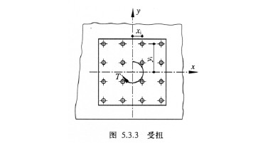 5.3.3 按彈性分析時,群錨在扭矩 T 作用下(圖5.3.3),錨栓的剪力設計值應按下