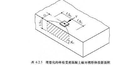 6.2.6 群錨受剪,混凝土破壞楔形體在側(cè)面的投影面面積Ac,v,應按下列規(guī)定計算: