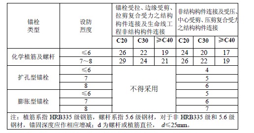 7.0.6 錨固連接抗震設計,應合理選擇錨固深度、邊距、間距等錨固參數(shù),或采用
