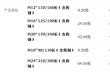 M12*110/160長,M16*125/190長,M20*170/240長,M10*90/130長,M24*2